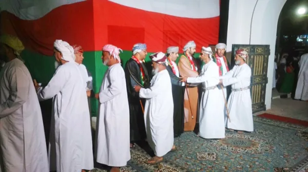 وقد تبادل الحضور عبارات التهاني والتبريكات بهذه المناسبة السعيدة والغالية على قلب كل عماني ، تعلو محياهم البهجة والفرحة والسرور وألهجت ألسنة الجميع بالدعاء والضراعة إلى المولى عز وجل أن يديم نعمة الصحة والعافية على المقام السامي لمولانا حضرة صاحب الجلالة السلطان قابوس بن سعيد المعظم حفظه الله ورعاه وأن يمده الله بالعمر المديد وعلى عماننا الغالية نعمة الأمن والأمان .