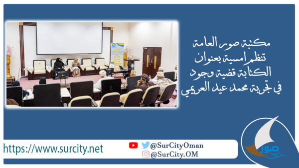 دشنت مكتبة صور العامة فعالياتها للعام 2022 وذلك من خلال تنظيمها امسية بعنوان الكتابة قضية وجود في تجربة محمد عيد العريمي وبأستضافة الأديبة الدكتورة عزيزة الطائي وبرعاية من الشركة العمانية الهندية للسماد وحضرها عدد من الكتاب والمثقفين والأدباء بالولاية وأدارتها الكاتبة والشاعرة مريم بنت عبدالله الحتروشية