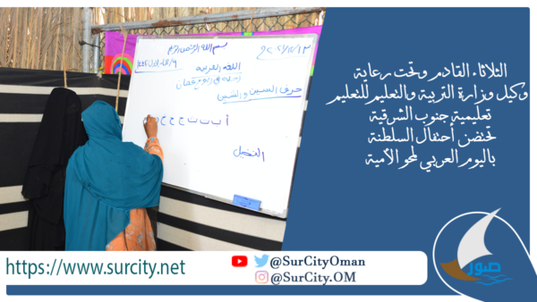 تحتضن المديرية العامة للتربية والتعليم لمحافظة جنوب الشرقية حفل السلطنة السنوي بمناسبة اليوم العربي لمحو الأمية الذي يصادف الثامن من يناير من كل عام، حيث سيقام الأحتفال يوم الثلاثاء القادم 11 يناير 2022م تحت رعاية سعادة الأستاذ الدكتور عبدالله بن خميس بن علي أمبوسعيدي وكيل وزارة التربية والتعليم للتعليم وذلك بقاعة الشرقية بجامعة التقنية والعلوم التطبيقية بصور