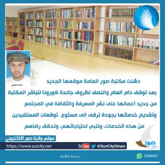 مضيفا أن مكتبة صور العامة نفذت خلال السنوات الماضية العديد من الأنشطة الثقافية والأدبية المختلفة، كما أن لها الكثير من المنتسبين وهي دائما ما تأخذ الفرص المتاحة لزيارات المثقفين وتحولها إلى محاضرات أو ندوات حسب الوقت المناسب للضيوف.