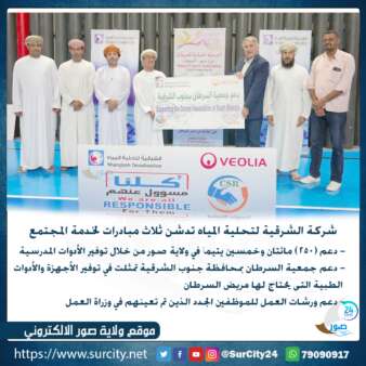 وقد تم تدشين المبادرات بحضور موسى بن الصقر الخروصي مدير عام المديرية العامة للعمل بمحافظة جنوب الشرقية والدكتور محمد بن ابراهيم الفارسي رئيس جمعية السرطان بجنوب الشرقية، فيما حضرها من جانب الشركة فليب بولسن المدير التنفيذي لشركة الشرقية لتحلية المياه والدكتور صالح العلوي مدير المسؤولية الاجتماعية بالشركة.