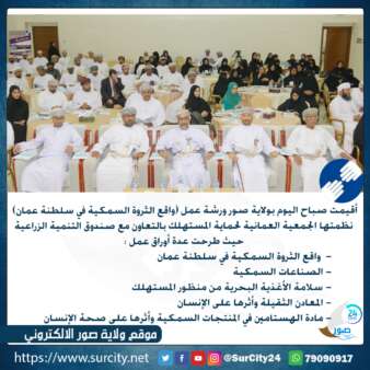 نظمت الجمعية العمانية لحماية المستهلك ورشة عمل (واقع الثروة السمكية في سلطنة عمان) بقاعة البلدية بولاية #صور بالتعاون مع صندوق التنمية الزراعية والسمكية تحت رعاية سعادة الدكتور يحيى بن بدر المعولي محافظ جنوب الشرقية