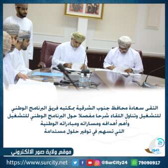 تناول اللقاء شرحا مفصلا حول البرنامج الوطني للتشغيل وأهم أهدافه ومساراته ومبادراته الوطنية التي تسهم في توفير حلول مستدامة تتسق مع خطط التطوير الاقتصادي المرتبطة بقطاع التشغيل في سلطنة عمان، كما تم التطرق إلى البيانات الاحصائية وتوزيع الموارد البشرية لمحافظة جنوب الشرقية من خلال البيانات السكانية والهرم السكاني، وبيانات الباحثين عن العمل واحصائيات العاملين، وفرص التوظيف المتاحة في المحافظة .