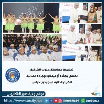 رعى سعادة ماجد بن سليمان البحري المحترم وكيل وزارة التربية والتعليم للشؤون الإدارية والمالية الأحتفال الذي نظمته المديرية العامة للتربية والتعليم بمحافظة جنوب الشرقية وللعام السابع على التوالي بجائزة أوميفكو للإجادة العلمية لتكريم الطلبة المجيدين دراسيا للعام الدراسي 2021 / 2022 وبدعم من الشركة العمانية الهندية للسماد (أوميفكو) وذلك بقاعة الشرقية بجامعة التقنية والعلوم التطبيقية بصور.