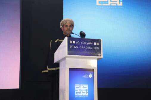 وأضاف قائلا: أيها الخريجون والخريجات يا مناراتَ العلمِ، يا قادةَ العطاءِ، يا رفقاءَ الدرب ،جاءتْ لحظةٌ مُشْرقَةٌ نودِّعُ فيها التعبَ وأيامَ الدِّراسةِ، لِنَحْصُدَ ما زرعناه خلالَ تلكَ الأيامِ، ولِنُودِّعَ أصدقاءَ أمضينا مَعَهُم أوقاتًا مُمْتعةً، وزملاءَ كانوا لنا العونَ والسندَ، وآياتُ الفَرَحِ ترتَسِمُ على وجوهِنا، وبريقُ البهجةِ يضيءُ نفوسَنا لِتنْطلقَ مِنْ لحظةِ التَّخَرُّجِ هذه إلى الحياةِ ومسؤولياتِها، مستذكرين سنواتٍ مَضَتْ مِنَ التَّعَبِ والاجتهادِ، تفانينا فيها بقلوبِ ملؤُها أَمَلٌ لِبِناءِ حاضرِ عُمانَ، وتأسيسِ مستقبلِها لِمَنْ يَخلُفُنا.