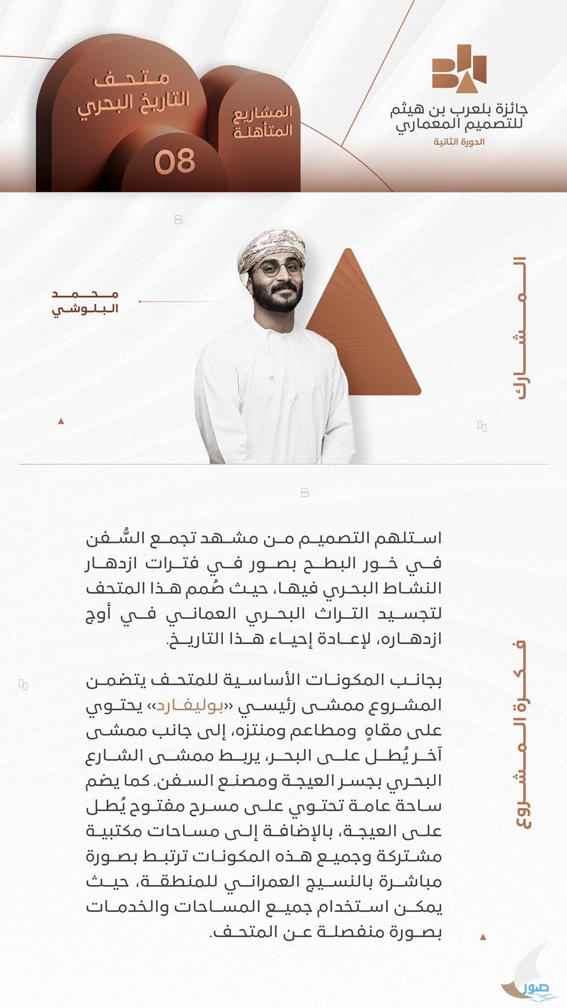 مشروع محمد البلوشي الفائز بجائزة بلعرب “المعمارية” يستلهم تصميمه من مشهد تجمع السُّفن في خور البطح بصور