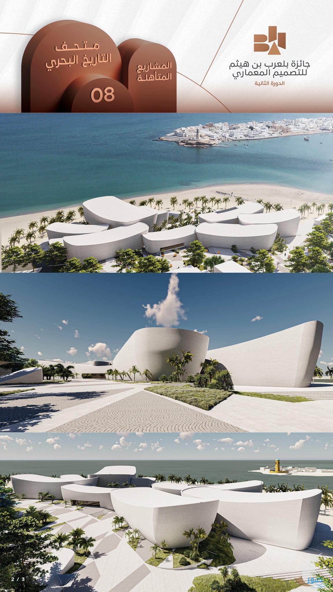 توّج صاحب السمو السيّد بلعرب بن هيثم آل سعيد مساء اليوم المشروعات الفائزة في الدورة الثانية لجائزة بلعرب بن هيثم للتصميم المعماري والفائز في مسابقة تصميم جناح سلطنة عُمان في إكسبو اليابان ٢٠٢٥م، في الحفل الختامي للجائزة والذي أقيم في الجامعة الألمانية للتكنولوجيا بولاية السيب، حيث توّج بالمركز الأول في جائزة بلعرب بن هيثم للتصميم المعماري محمد بن صلاح البلوشي، الذي استلهم تصميمه من مشهد تجمع السفن في خور البطح بصور في فترات ازدهار النشاط البحري فيها، حيث صُمم هذا المتحف لتجسيد التراث البحري العماني في أوج ازدهاره؛ لإعادة إحياء هذا التاريخ.