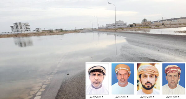 فيما ناشد محمد بن علي العامري الجهات المختصة بإيجاد حل نهائي للطريق الرابط بين ولاية صور ورأس الحد والواقع في منطقة شياع لتأثره عند ارتفاع منسوب مياه البحر والأمطار، حيث صاحب المركبة يتفاجأ بغزارة الماء الموجودة في الطريق لعدم وجود حواجز جانبيه ويختفي الشارع نهائيًّا عندما عند عبور الوادي والبحر، ورفعنا مطالبنا منذ 8 سنوات بوضع حواجز على جانبي الطريق ومعالجة هذا الطريق ببناء جسر تمرُّ تحته السيول، وحتى الآن لم ينفذ، فيما قال حمدان بن سالم العامري بأن الشارع بمنطقة شياع يقسمه البحر الي نصفين اثناء هبوب الرياح والأمطار وارتفاع الأمواج، وبالتالي تتعطل مصالح الناس جرَّاء دخول المياه لأماكن بعيدة في اليابسة، وتتوقف حركة السير ونطالب بحل جذري برفع الشارع وعمل جسر تمرُّ منه المياه.