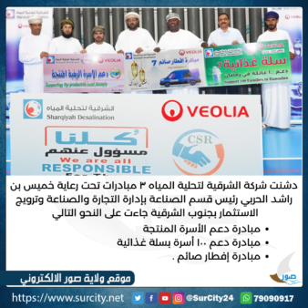 دشنت شركة الشرقية لتحلية المياه ٣ مبادرات تحت رعاية خميس بن راشد الحربي رئيس قسم الصناعة بإدارة التجارة والصناعة وترويج الاستثمار بجنوب الشرقية جاءت على النحو التالي
