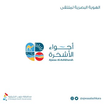 من جانبه قال سعيد بن عبدالله النحوي الرئيس التنفيذي لمؤسسة الثلث للتصميم التي نفذت الهوية البصرية للملتقى: إن فلسفة الهوية البصرية لملتقى ” أجواء الاشخرة” تهدف إلى تجسيد قيم وروح الملتقى بأسلوب مرئي فريد، وذلك من خلال الاستخدام المبتكر للألوان والأشكال الهندسية. حيث تعبر الألوان الأزرق الغامق والفاتح والأصفر والأحمر عن الفرح والتجارب المتنوعة التي يتضمنها الملتقى، بينما ترمز الأشكال الهندسية وتمثال الجمل والكثبان الرملية والأمواج إلى التنوع والحيوية والبهجة، مما يعكس الطابع الديناميكي للملتقى وجاذبيته للأفراد من مختلف الخلفيات.