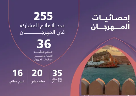 ووضح أنّ عدد الأفلام المشاركة في المهرجانِ بلغ 255 فيلمًا من 35 دولةً حولَ العالم، تأهّل منها 36 فيلمًا، منهم 20 فيلمًا دوليًّا، و 16 فيلمًا عمانيًا، وعن فئاتِ جوائزِ المهرجان قال الرزيقي: توزّعت الجوائز على 6 فئاتٍ بواقعِ 12 جائزةً، وهي جائزة أفضل فيلم روائي (عُماني)، وجائزة افضل فيلم روائي (دولي)، وجائزة لجنة التحكيم (الخاصة) عن فئة مسابقة الأفلام الروائيّة القصيرة العُمانية والدولية.