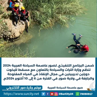 ضمن البرنامج التنفيذي لصور عاصمة السياحة العربية 2024 تنظم وزارة التراث والسياحة بالتعاون مع مسقط لليخوت دورتين تدريبيتين في مجال الإنقاذ في المياه المفتوحة والجارفة في ولاية صور، في الفترة من 6 إلى 10 أكتوبر 2024م.